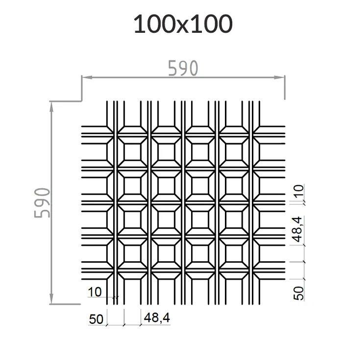 Подвесной потолок Грильято Пирамидальный ячейка 100х100 мм, высота 42.5 мм, цвет белый
